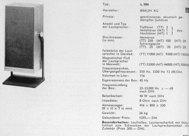 Ungefähre Beschreibung in Deutsch (Descripción aproximada en alemán): Lautsprechereinheiten L 900 2 lautsprecher aus holz und mit unterstutzung
