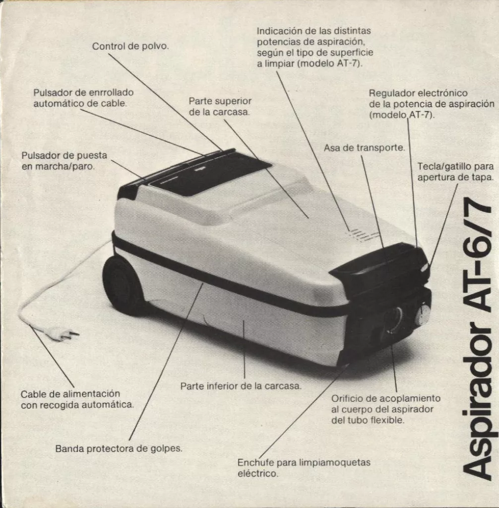 Ungefähre Beschreibung in Deutsch (Descripción aproximada en alemán): Bodenstaubsauger / Handstaubsauger aus Schlitten AT-6