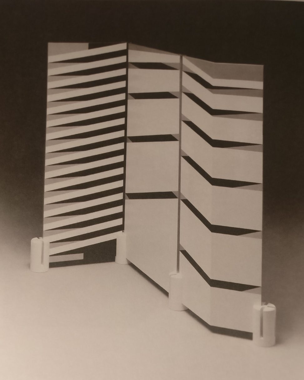 Ungefähre Beschreibung in Deutsch (Descripción aproximada en alemán): Trennwand PARAVENT für die Firma Rosenthal