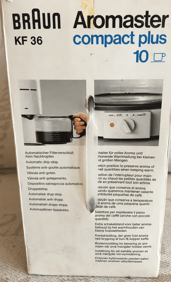 Ungefähre Beschreibung in Deutsch (Descripción aproximada en alemán): Kaffeemaschinen KF 32 Aromaster compact 8 plus