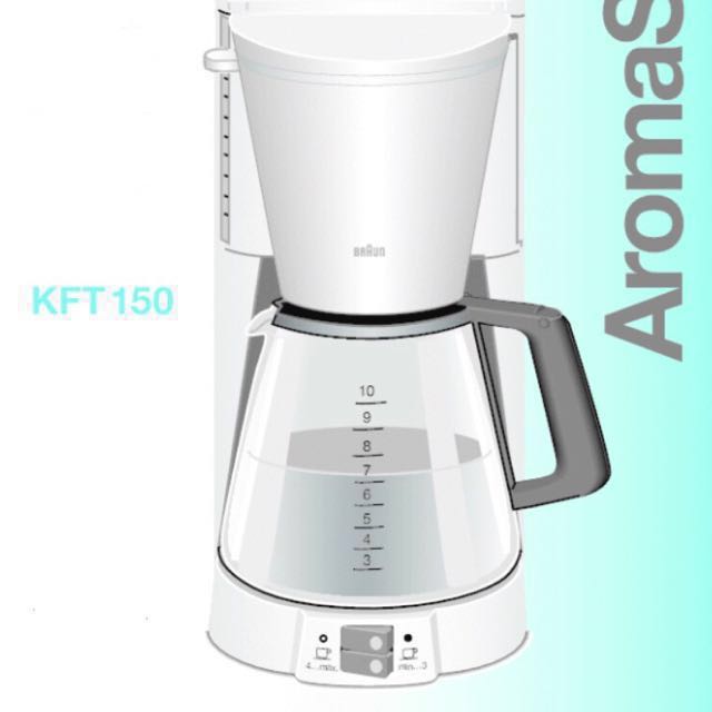 Ungefähre Beschreibung in Deutsch (Descripción aproximada en alemán): Kaffeemaschinen KFT 150 AromaSelect PureAqua 12/18