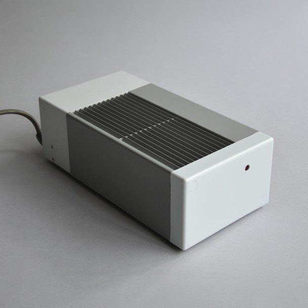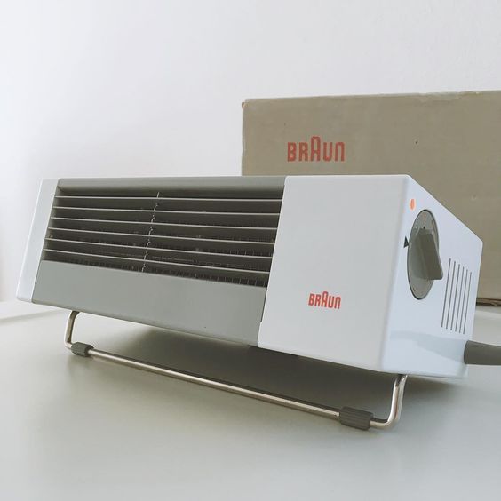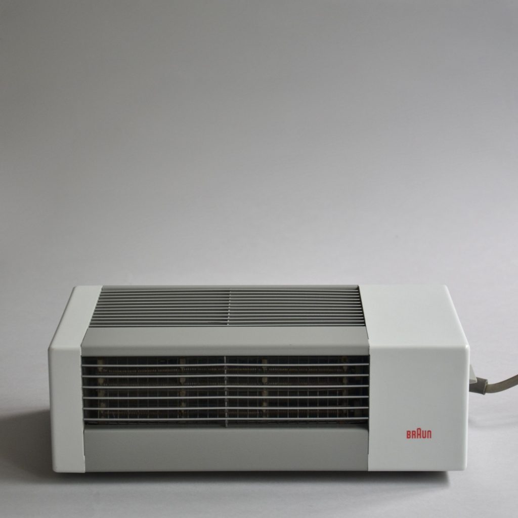 Calefactor con un claro aspecto de ladrillo pero con una superficie definida por las rejillas superiores y laterales para una mejor distribución del calor. El material principal es acero pintado, revestido en ambos extremos con termoplástico blanco. El uso de piezas de cerramiento simétricas por parte de Rams para articular las funciones operativas subyacentes fue retomado veinte años después por Hartwig Hahlcke en su diseño de tostadora HT 6.