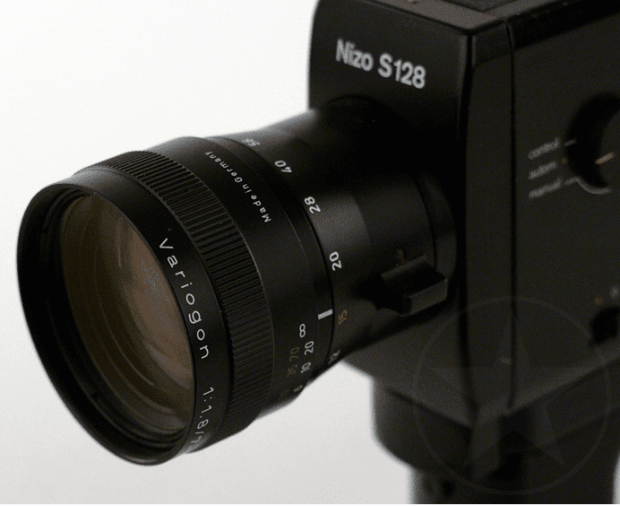 Ungefähre Beschreibung in Deutsch (Descripción aproximada en alemán): Nizo-Filmkameras Variogon 128 1,8/7-56 mm