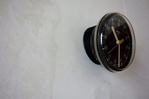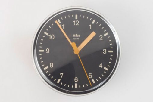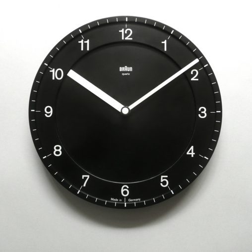 Dietrich Lubs ( 1988 )   Reloj de pared con un estilo que roza lo postmoderno. Números en Futura modificado.