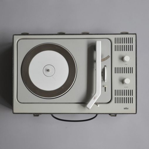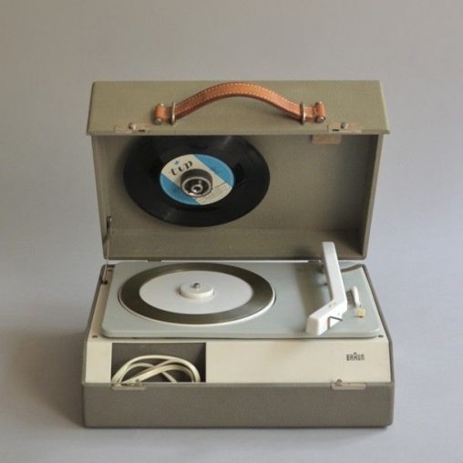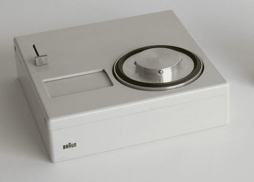 Willhelm Wagenfeld , Dieter Rams y Gerd Alfred Muller ( 1956 ) Primer tocadiscos portátil diseñado bajo las orientaciones de la HfG y que fue usado en dispositivos…