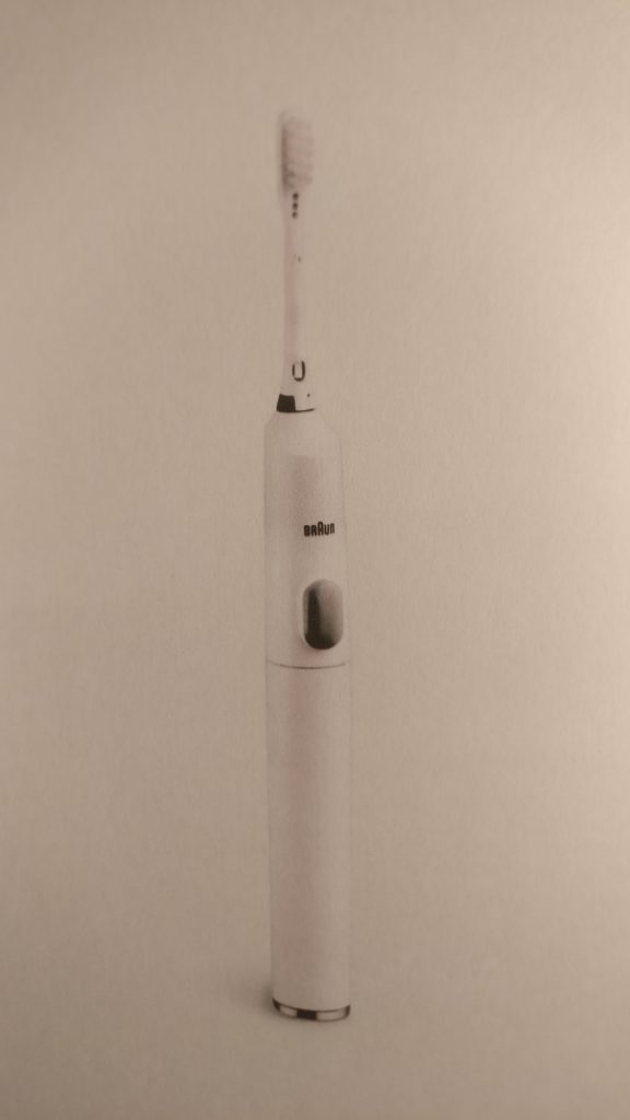 Cepillo Oral B Pulsonic del año 2014 donde se puede observar la similitud con el prototipo diseñado por Dieter Rams más de 40 años antes.