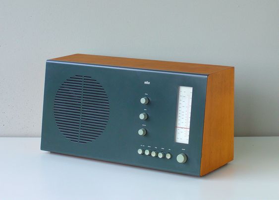 Placa frontal negra y carcasa chapada en haya. Radio de mesa a válvulas de Dieter Rams. La disposición de los controles es similar a la del SK phonosuper; la unidad de fono se sustituye por una rejilla de altavoz.