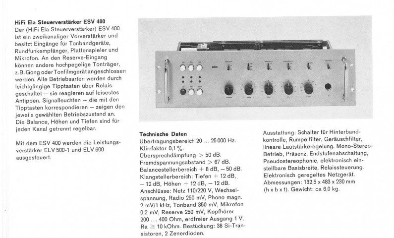 Ungefähre Beschreibung in Deutsch (Descripción aproximada en alemán): HiFi Ela Anlage EVS 400