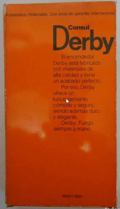Ungefähre Beschreibung in Deutsch (Descripción aproximada en alemán): Taschnfeuerzeuge DERBY
