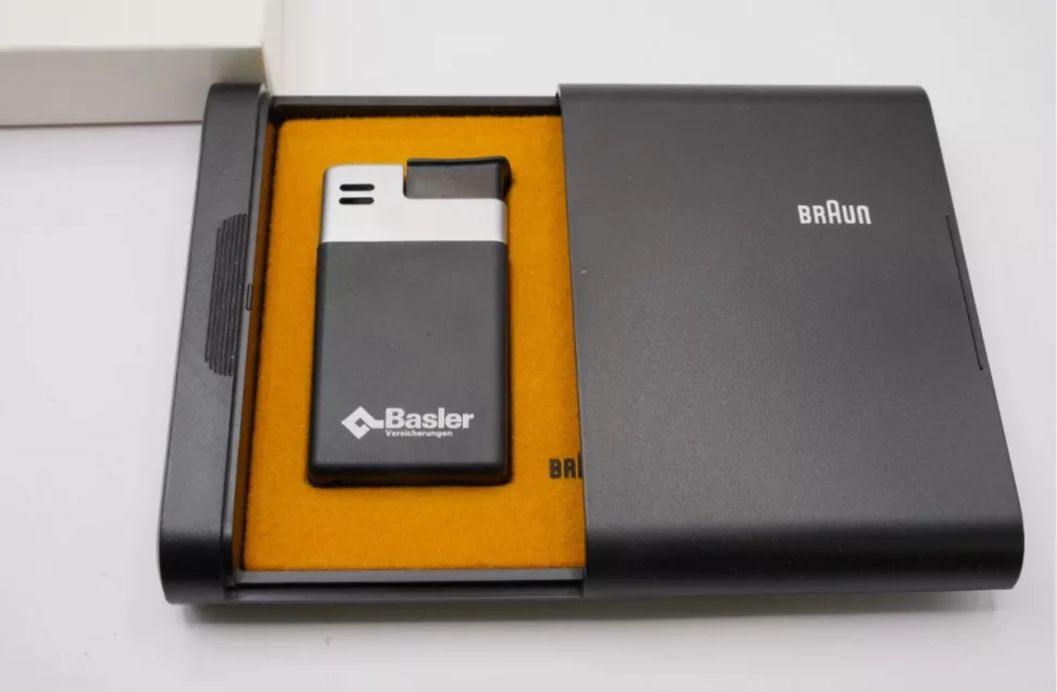 Ungefähre Beschreibung in Deutsch (Descripción aproximada en alemán): Taschnfeuerzeuge Mach 2 für BASLER