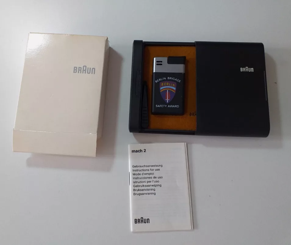 Ungefähre Beschreibung in Deutsch (Descripción aproximada en alemán): Taschnfeuerzeuge Mach 2 für BERLIN BRIGADE