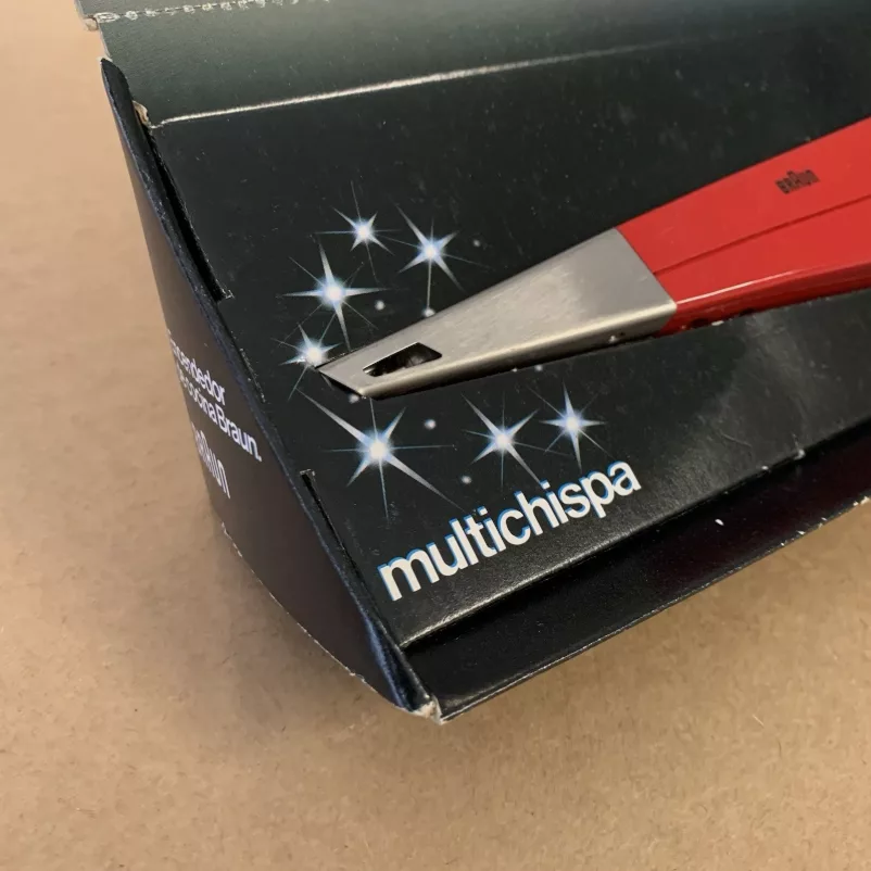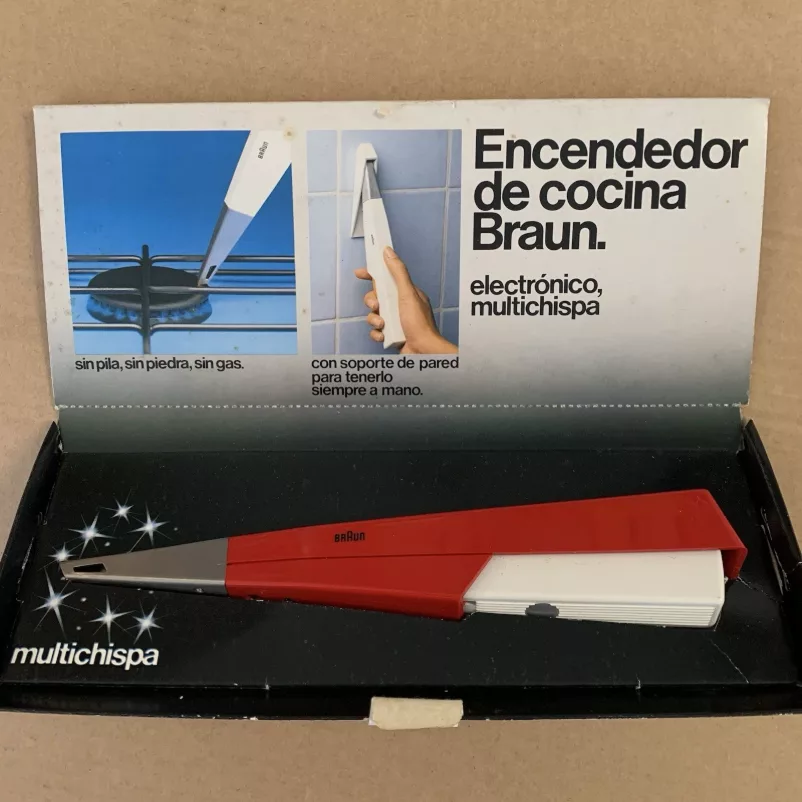 Ungefähre Beschreibung in Deutsch (Descripción aproximada en alemán): Spanische Produkte Kuchenfeuerzeug BG 1 rot