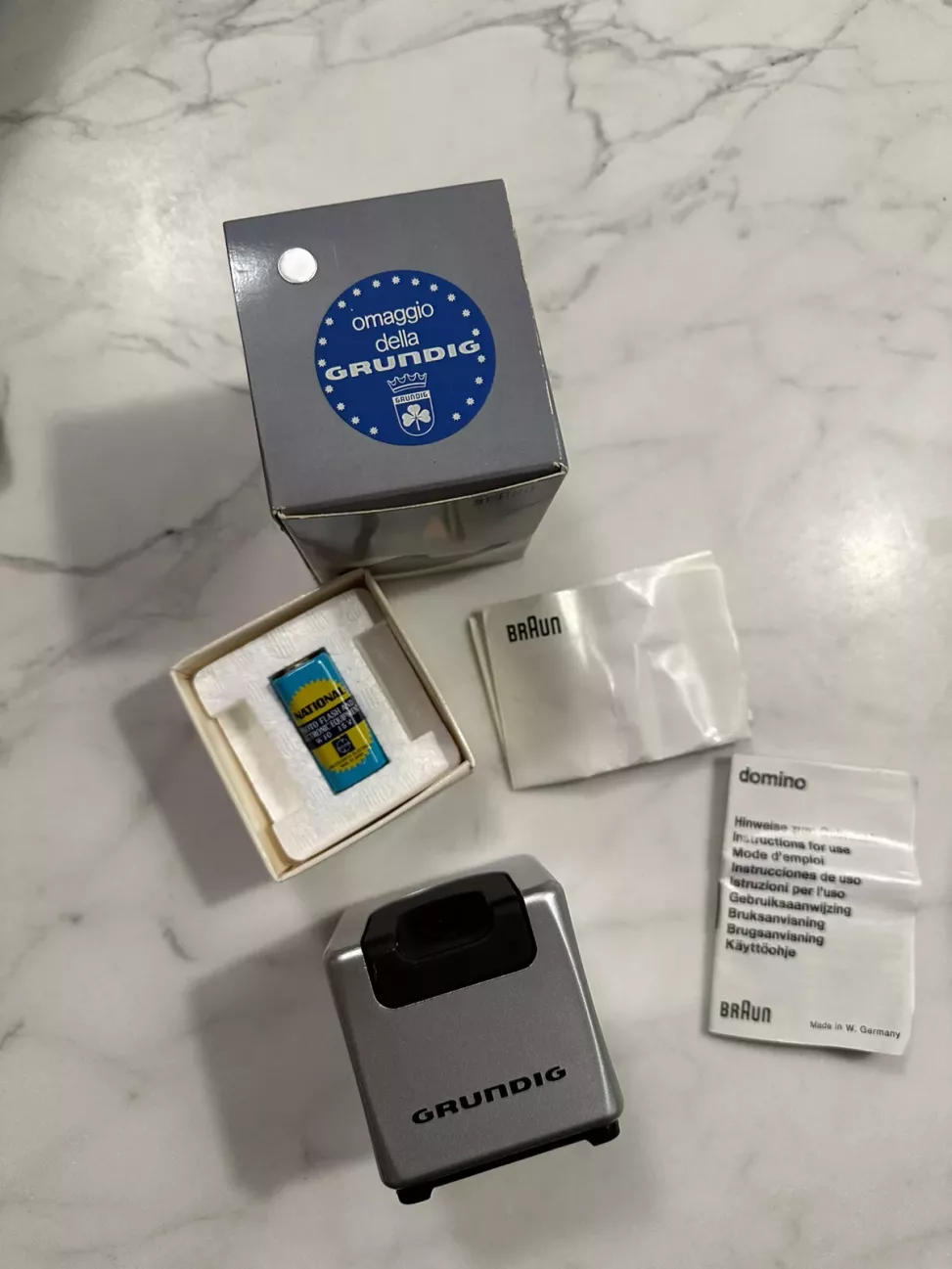 Ungefähre Beschreibung in Deutsch (Descripción aproximada en alemán): Tischfeuerzeuge T 3 Domino für Grundig