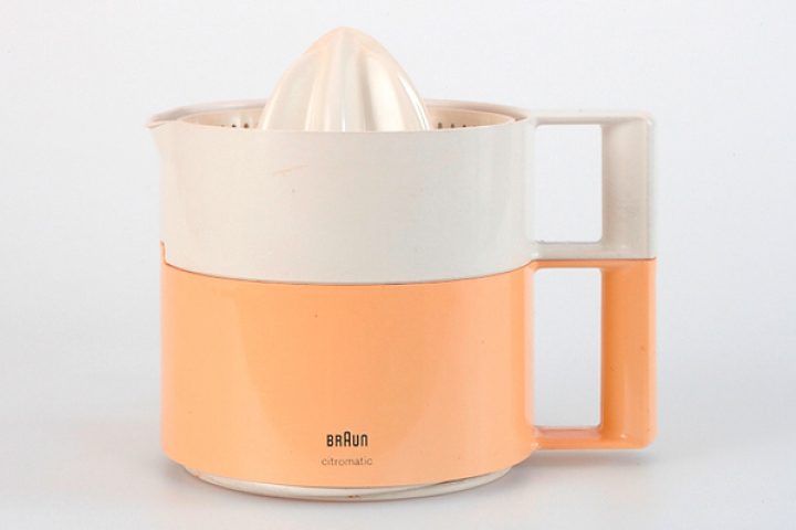 Exprimidor de dos piezas con jarra separable para uso de mesa.