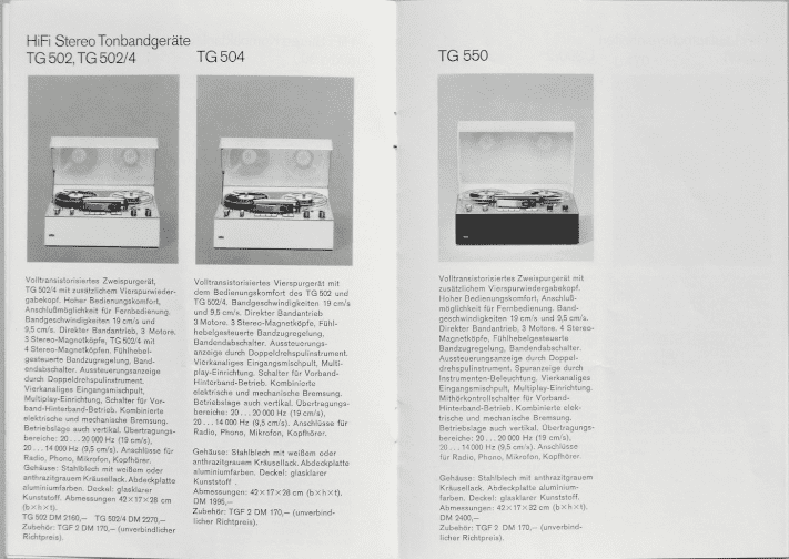 Ungefähre Beschreibung in Deutsch (Descripción aproximada en alemán): Tonbandgerate TG 502-4