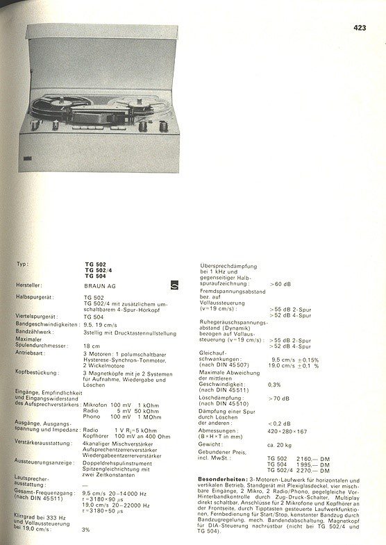Ungefähre Beschreibung in Deutsch (Descripción aproximada en alemán): Tonbandgerate TG 504