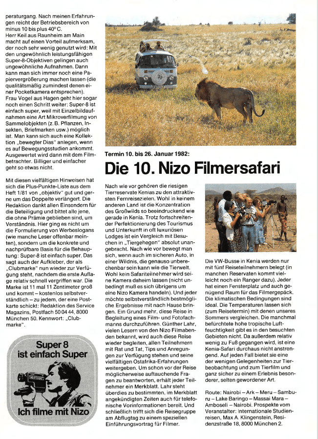 Braun Nizo editó desde 1969 una revista que distribuía por suscripción a los propietarios de una cámara de cine Nizo.