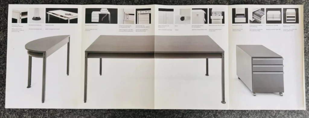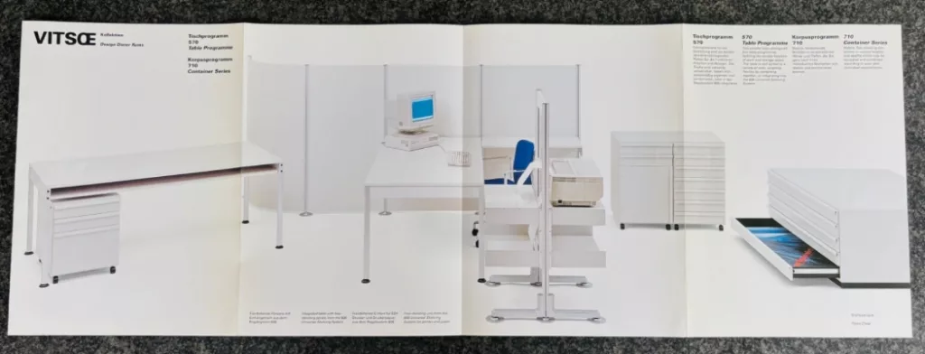 Ungefähre Beschreibung in Deutsch (Descripción aproximada en alemán): Büromöbel 570 für die Firmen Vitsoe und sdr+ (systemmöbel dieter rams)
