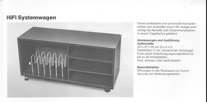 Ungefähre Beschreibung in Deutsch (Descripción aproximada en alemán): Untergestelle / Gerateschranke Mobelstuck zum System HI-FI 1977