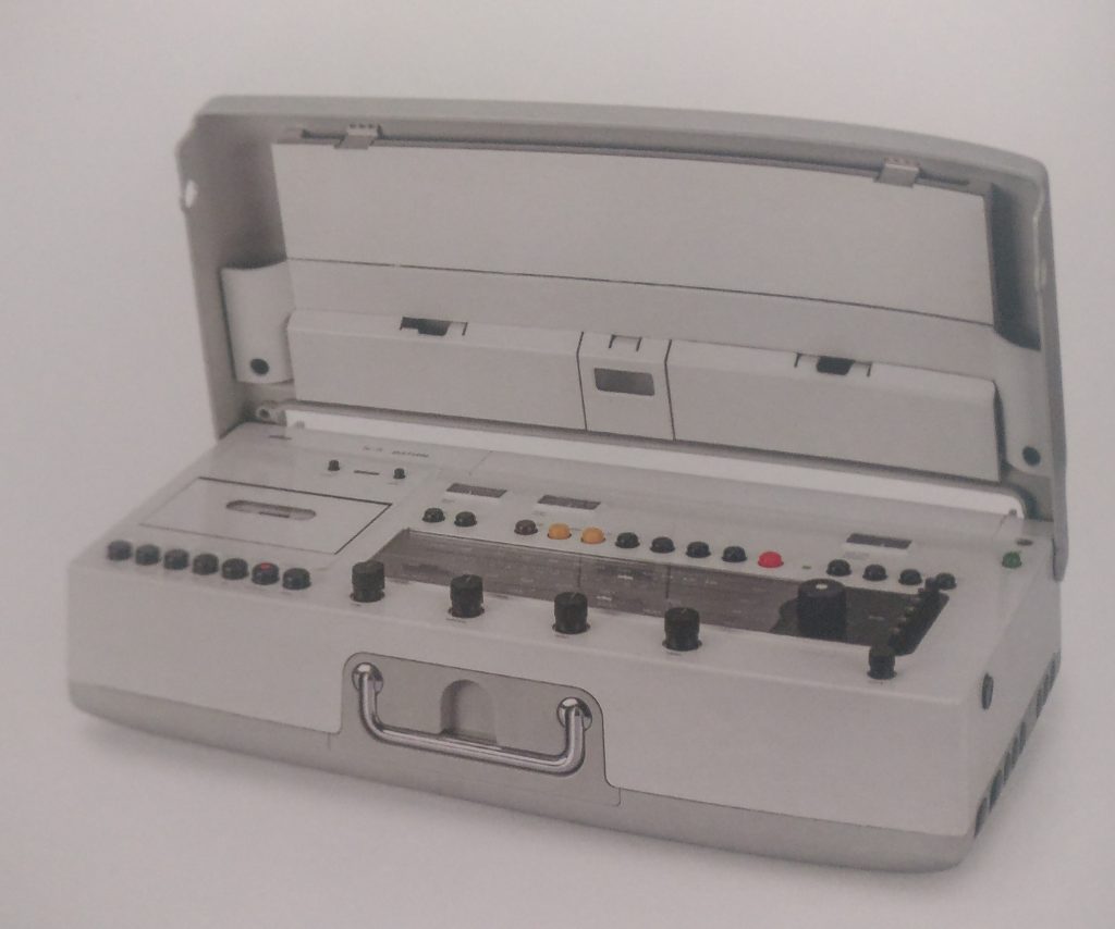 Ungefähre Beschreibung in Deutsch (Descripción aproximada en alemán): Prototyp eines tragbaren Soundgeräts und Lautsprechers