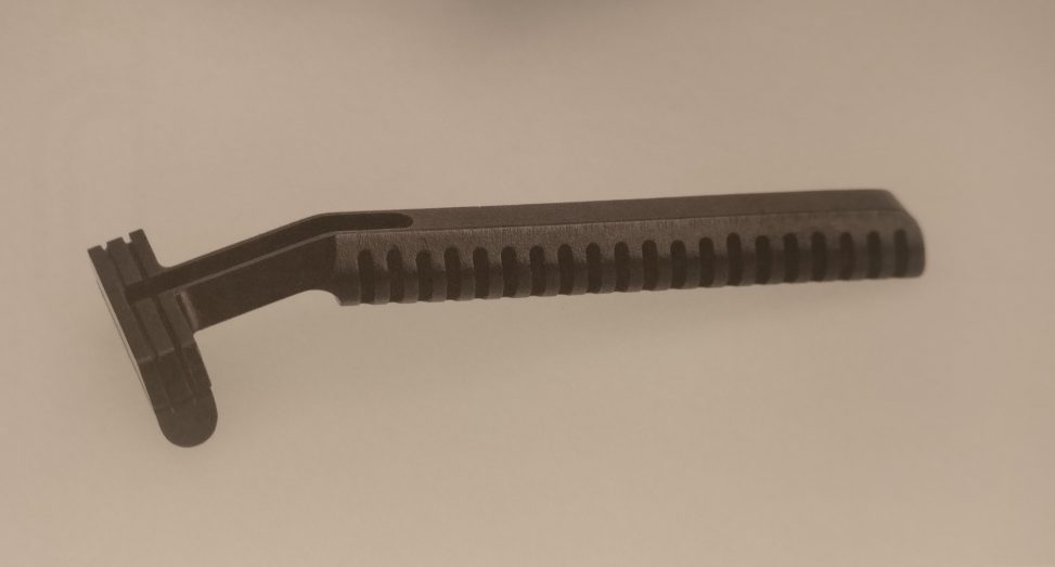 Ungefähre Beschreibung in Deutsch (Descripción aproximada en alemán): Einweg-Prototyp eines Gillette-Rasierers