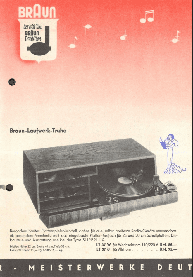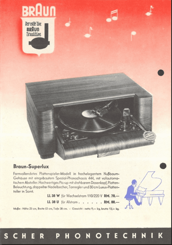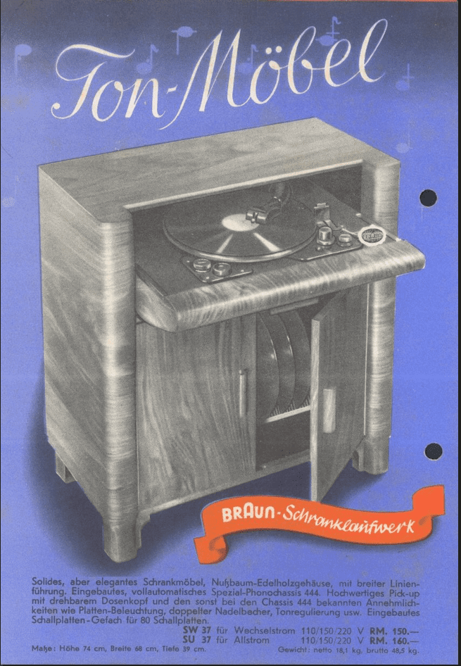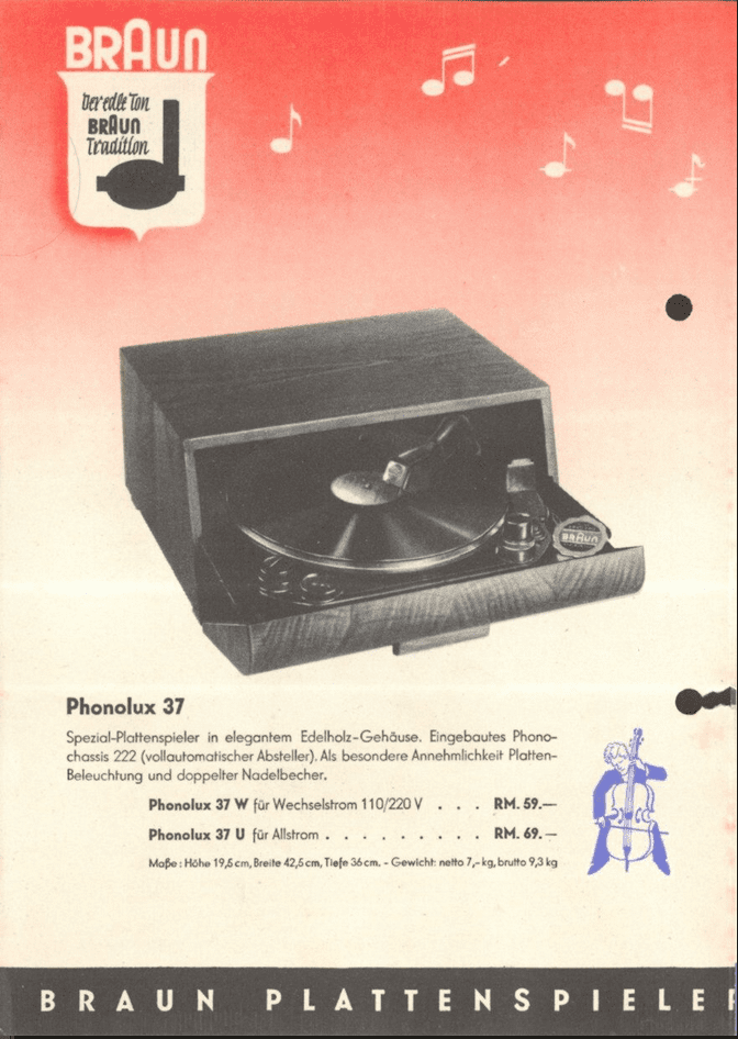 El diseño de la comunicación antes del inicio de la nueva era de Braun en 1955 se puede apreciar en los catálogos del año 1.938 comparándolos con los que se realizaron a partir de dicho año.