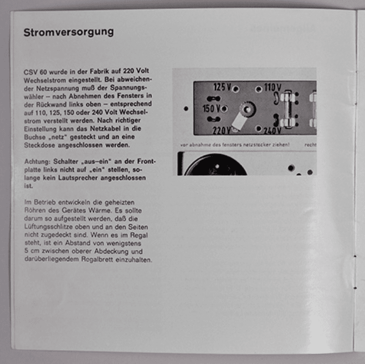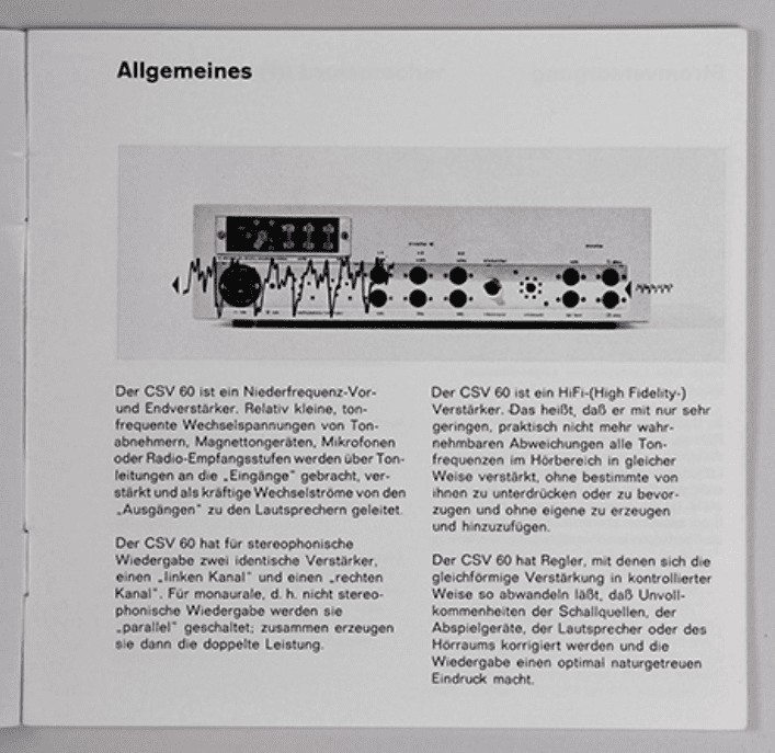 1960 Especificaciones técnicas amplificador CSV 60