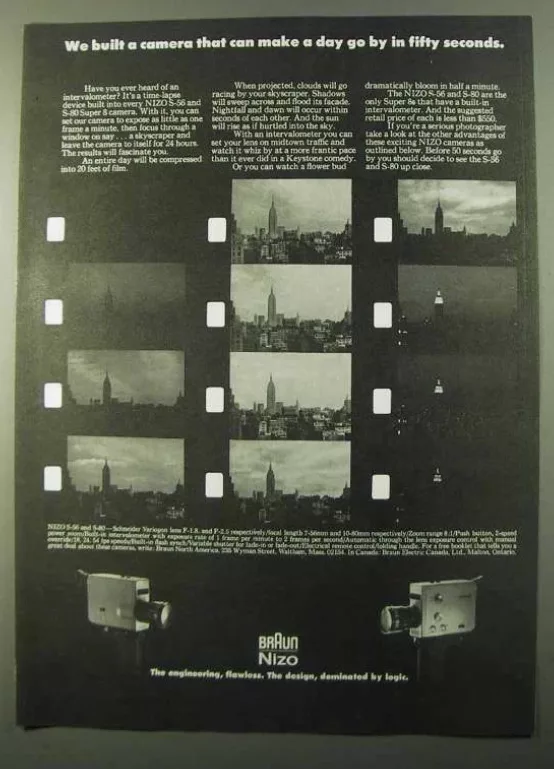 1971 Hoja de publicidad de las cámaras Braun NIZO S-56 and S-80 Super 8
