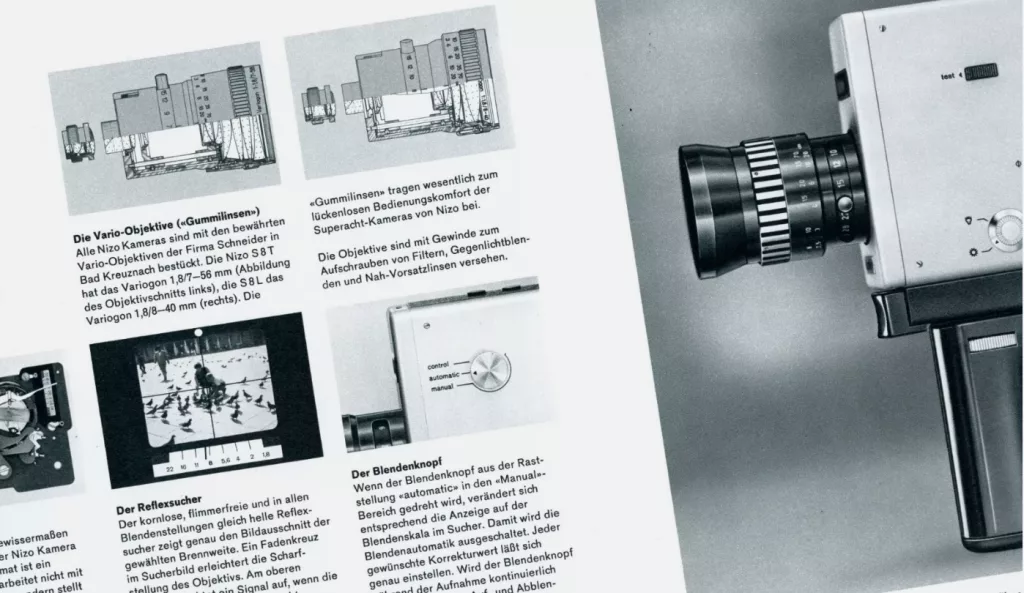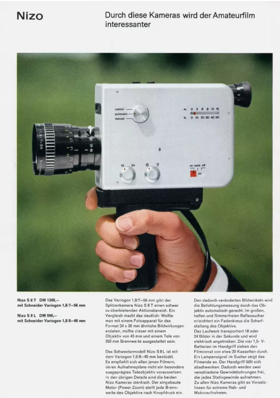 Folleto de las cámaras Braun NIZO S8T,S8L y S8E Variogon