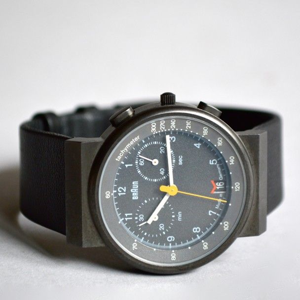 Un reloj deportivo con detalles de gran precisión. Inusualmente, la numeración de la está escrita con tipografía Akzidenz Grotesk, a diferencia de Helvética. Gran cantidad de información organizada con gran claridad y equilibrio en una esfera sorprendentemente pequeña para un reloj de este tipo. La caja con acabado cerámico de titanio mide apenas 32 mm de borde a borde, con un grosor de 7 mm.