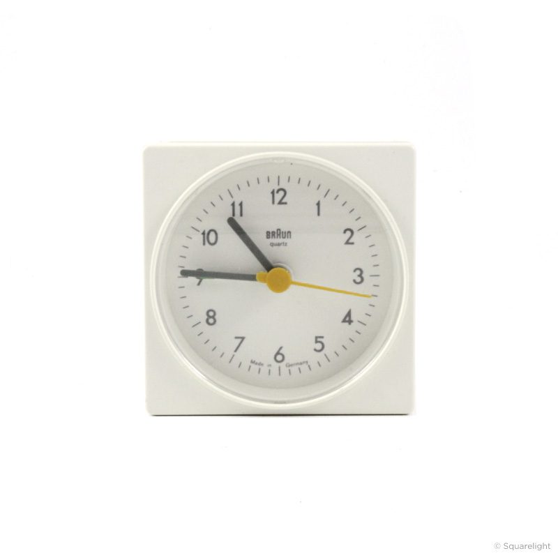 Ungefähre Beschreibung in Deutsch (Descripción aproximada en alemán): Tisch- und Weckuhren AB 1 farbe weiß
