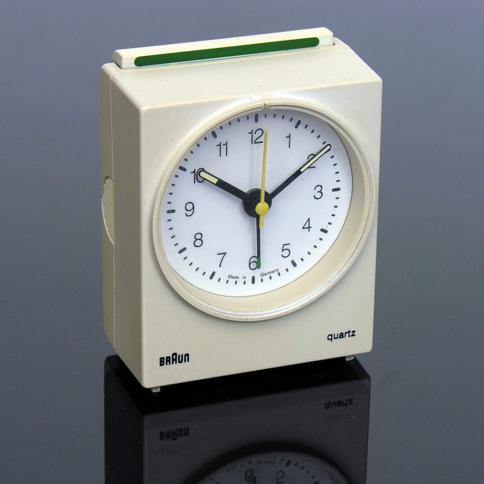 Ungefähre Beschreibung in Deutsch (Descripción aproximada en alemán): Tisch- und Weckuhren AB 30 farbe weiß