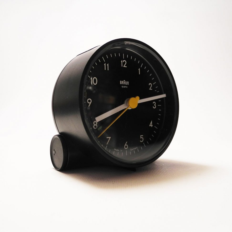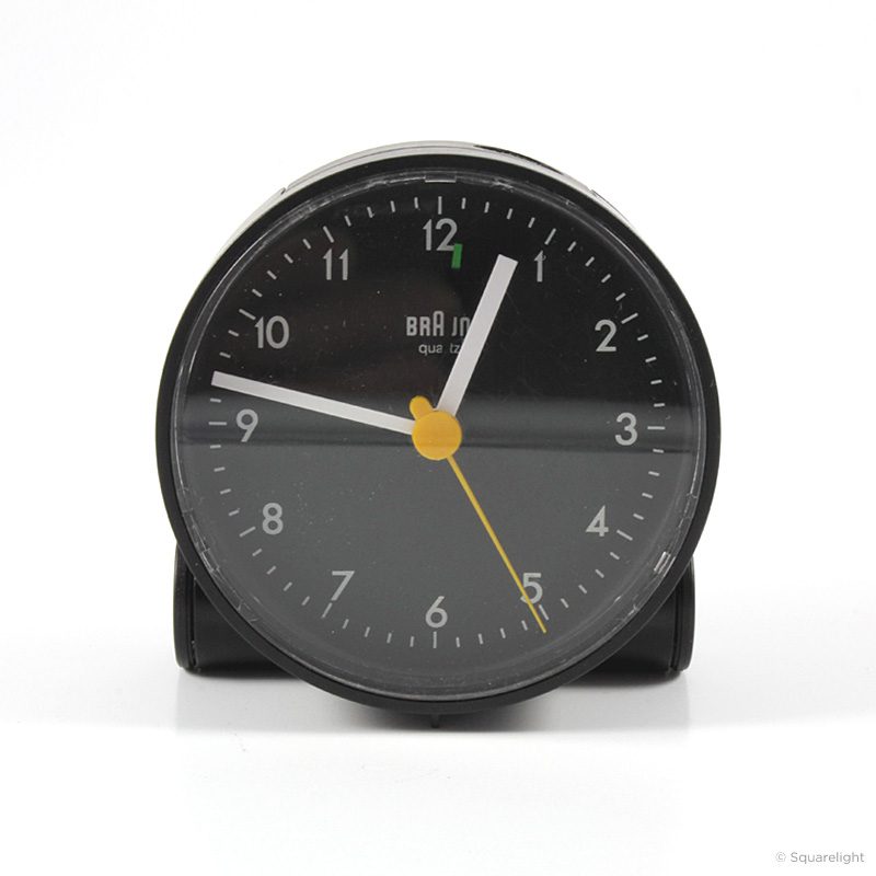 Ungefähre Beschreibung in Deutsch (Descripción aproximada en alemán): Tisch- und Weckuhren AB 5 schwarz