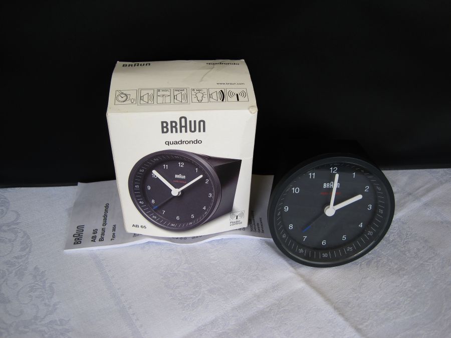 Ungefähre Beschreibung in Deutsch (Descripción aproximada en alemán): Tisch- und Weckuhren AB 65 quadrondo