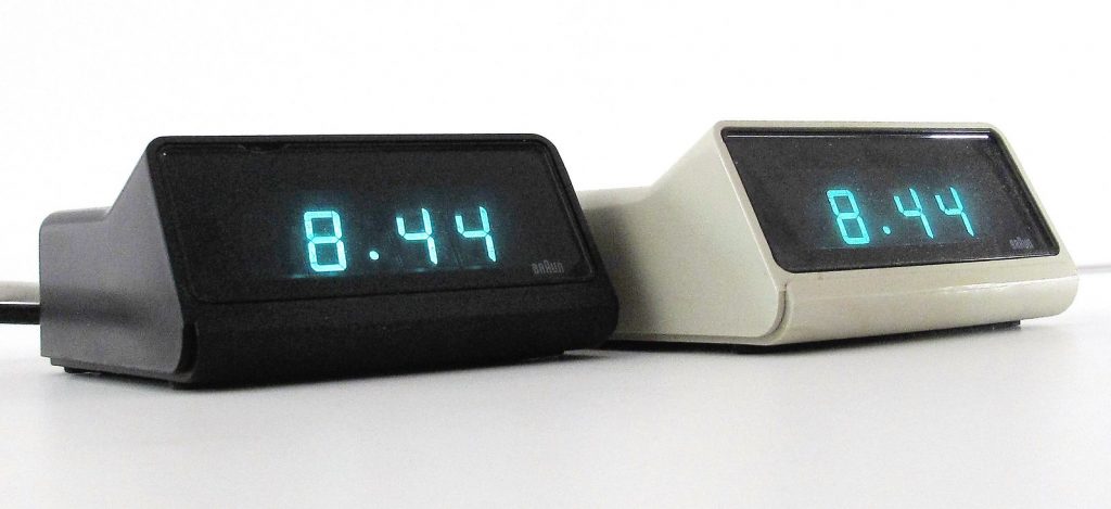 Ungefähre Beschreibung in Deutsch (Descripción aproximada en alemán): Tisch- und Weckuhren DN 30 farbe weiß