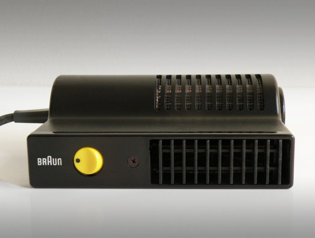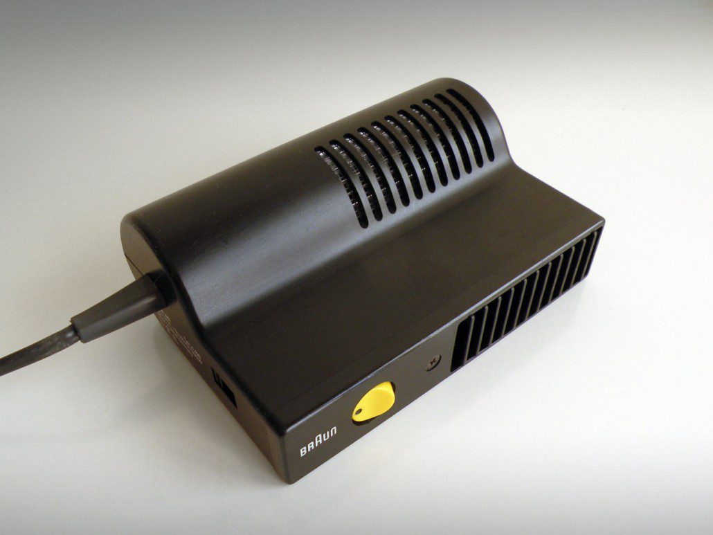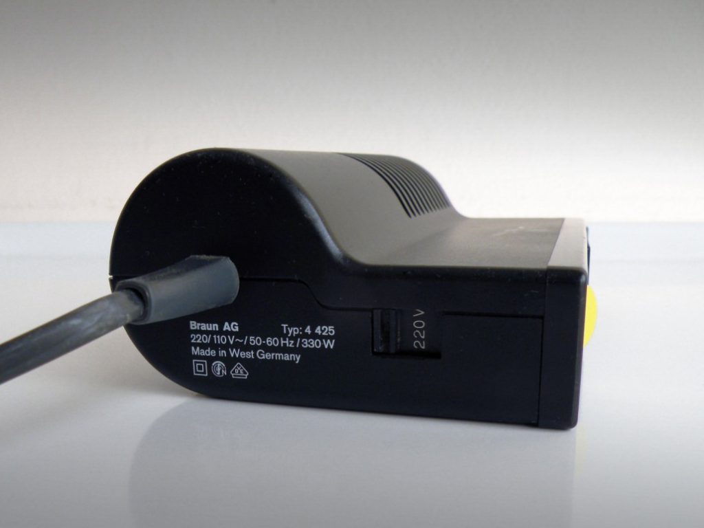 Una reingeniería del diseño HLD 231 de Weiss de 1964. Las dos partes de esta carcasa se unen mediante un único tornillo fijado a través de la placa de salida. La ubicación prominente de la fijación expresa esta importancia estructural. Con los modelos posteriores, los avances en la tecnología de los plásticos permitieron que la salida se fabricara con el mismo material que el cuerpo. Aunque el tornillo se conserva, se pierde cierto rigor. Al ser del mismo material que el cuerpo, la función de sujeción de la placa frontal está menos articulada. La transición del uso de múltiples materiales a uno único y rentable también se aprecia en el rediseño del HL 70 del diseño HL 1 de Weiss.