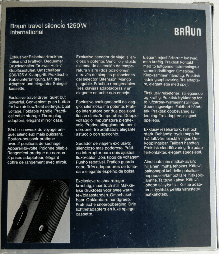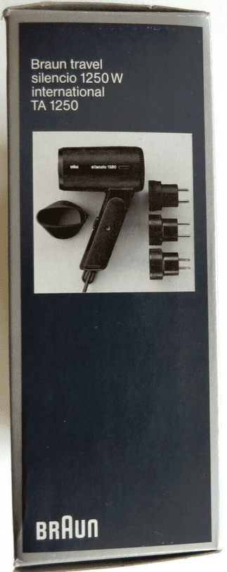 Ungefähre Beschreibung in Deutsch (Descripción aproximada en alemán): Haartrockner TA 1250 travel silencio international
