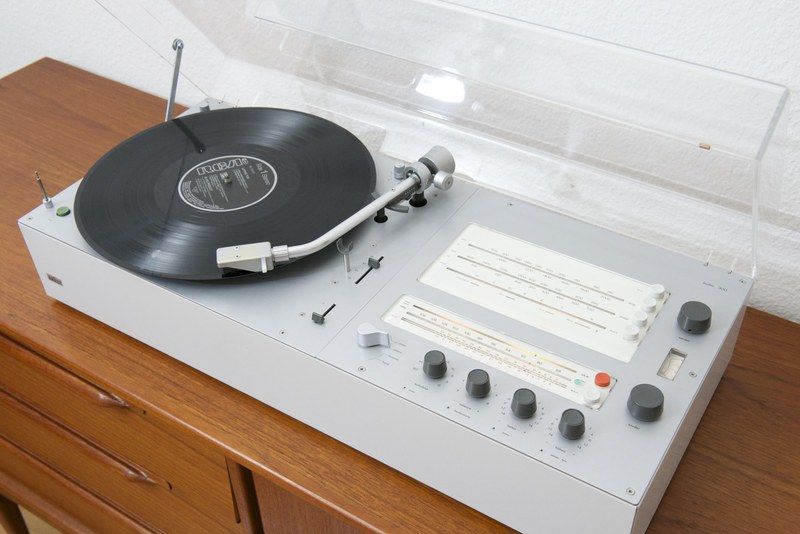 Ungefähre Beschreibung in Deutsch (Descripción aproximada en alemán): Kompaktgerät mit Plattenspieler Audio 300 farbe weiß