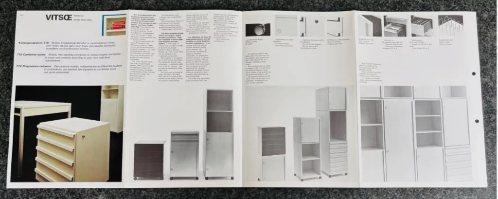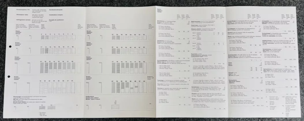 Ungefähre Beschreibung in Deutsch (Descripción aproximada en alemán): 710 Speichersystem für Vitsoe- und sdr+-Unternehmen (systemmöbel dieter rams)