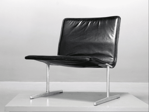 Dieter Rams ( 1961 ) Las patas de aluminio con acolchado liso y una carcasa de fibra de vidrio logran un resultado que es un perfil visual elegante…