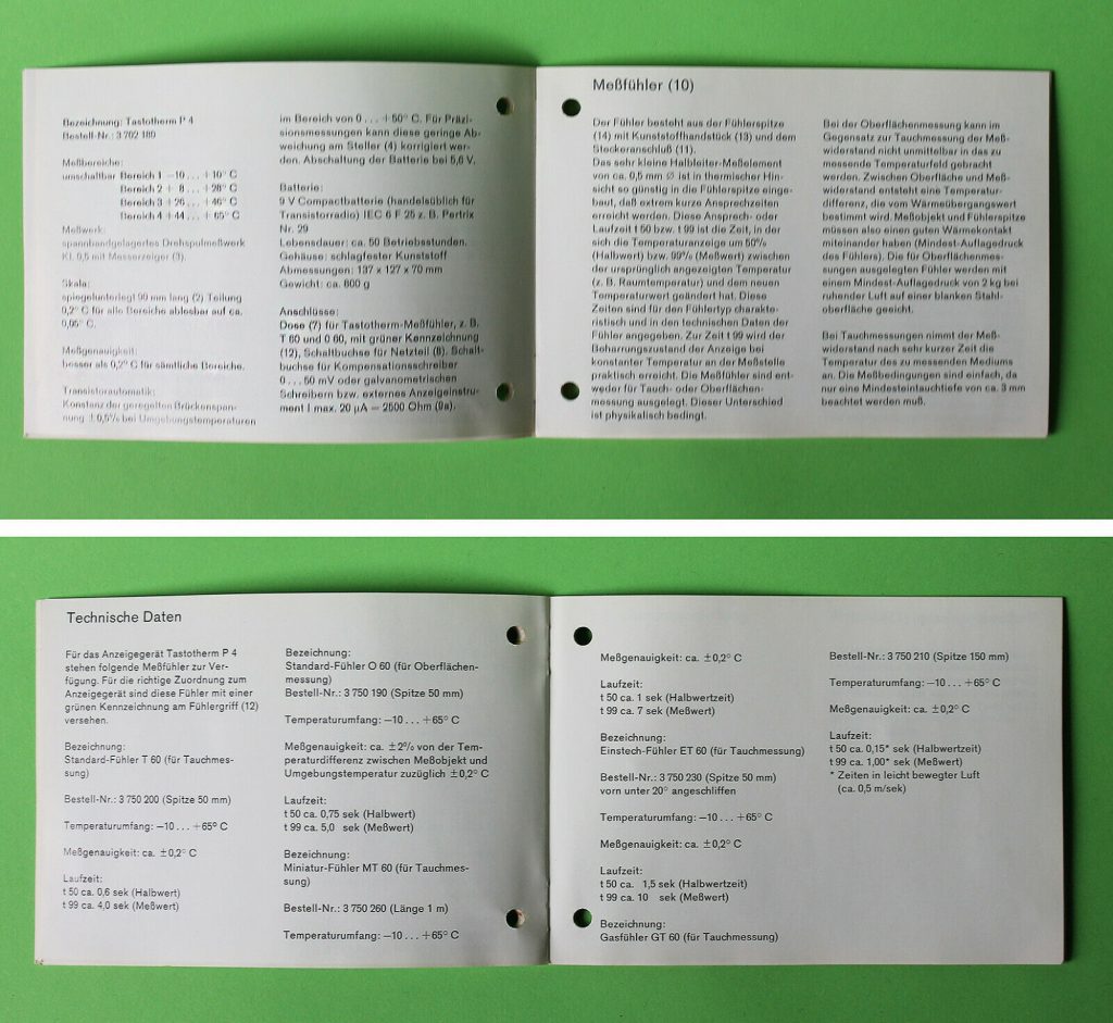 Ungefähre Beschreibung in Deutsch (Descripción aproximada en alemán): Gerat zur Messung der Hauttemperatur Tastotherm P4