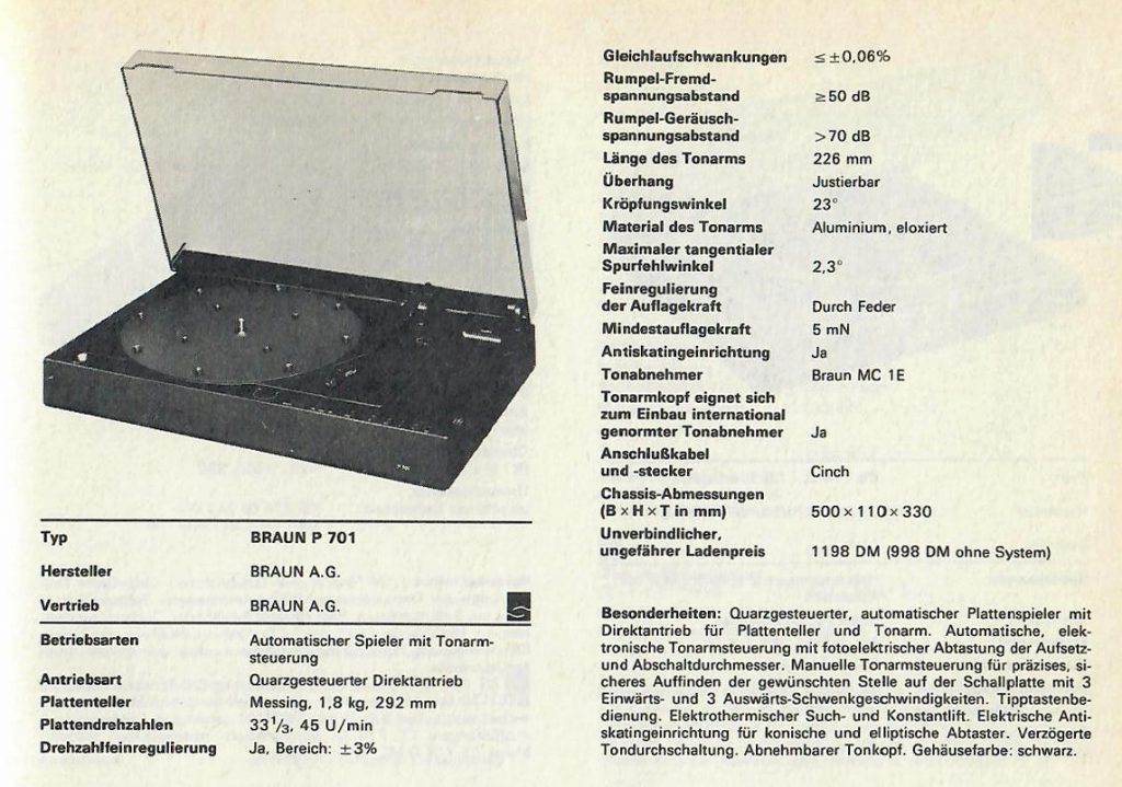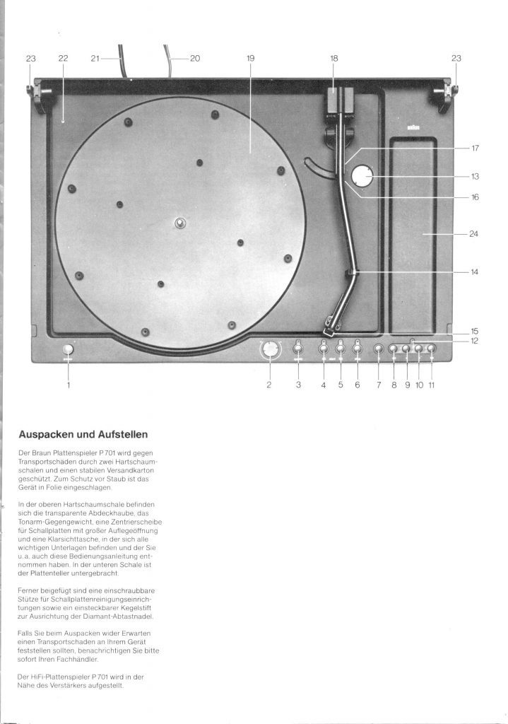 Ungefähre Beschreibung in Deutsch (Descripción aproximada en alemán): Plattenspieler P 701