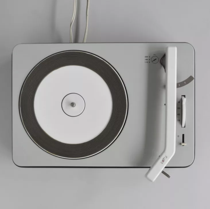 Módulo PC 4 montado sobre zócalo. La revisión de Rams del módulo PC 3 de Wagenfeld consistió en tres modificaciones: 1) sustitución de la forma orgánica (redondeada) del brazo por una basada en segmentos ortogonales (rectos); 2) sustitución del disco cromado del plato por un disco retráctil empotrado; 3) sustitución de cinco surcos estabilizadores de goma por una banda continua de lisa , sin surcos. Este énfasis formal en el círculo y el cuadrado, en lugar de las referencias más complejas y naturalistas de Wagenfeld, confirió al diseño un aspecto claramente técnico. Este cambio fue coherente con la reducción del uso de madera en el diseño de las carcasas en el programa de audio y su sustitución por metal lacado o pintado.
