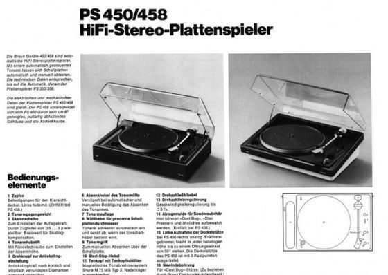 Ungefähre Beschreibung in Deutsch (Descripción aproximada en alemán): Plattenspieler PS 458