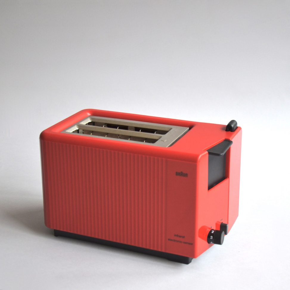 Este grupo de tostadoras muestra la austeridad y contención de Braun incluso cuando se diseñan artículos de tipo «pop». Incluye sensor electrónico de grade tostado, rejilla integrada para calentar panecillos, bandeja recogemigas y pinzas para una recogida segura de los restos.