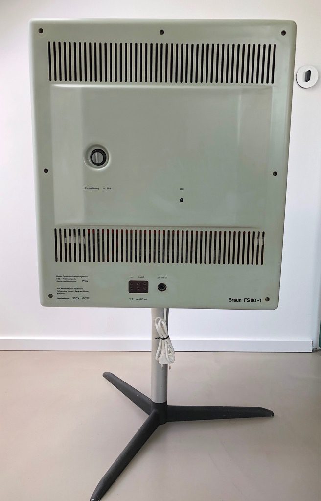 Ungefähre Beschreibung in Deutsch (Descripción aproximada en alemán): Fernsehgerate / Videorecorder FS 80/1 Fernseher mit drehbasis