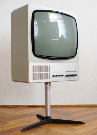 Ungefähre Beschreibung in Deutsch (Descripción aproximada en alemán): Fernsehgerate / Videorecorder FS 80/1 Fernseher mit drehbasis