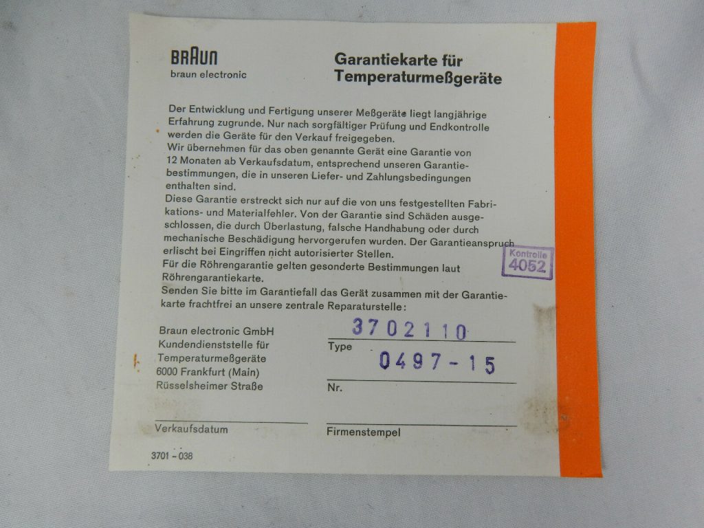 Ungefähre Beschreibung in Deutsch (Descripción aproximada en alemán): Gerat zur Messung der Hauttemperatur Tastotherm P6